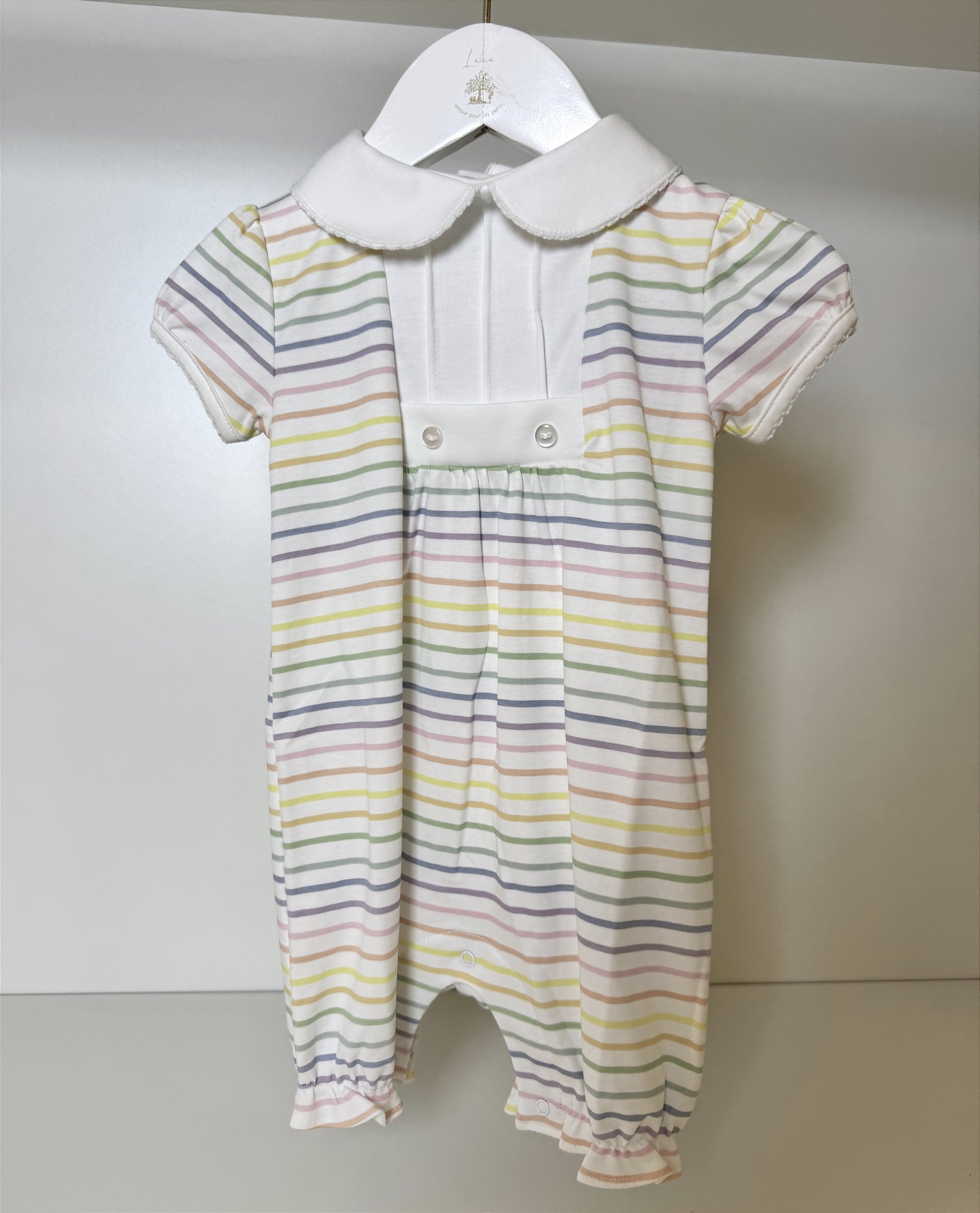 Uma peça rica em detalhes, possui elástico na barra, listrado. Ele transmite delicadeza, carinho e cuidado.