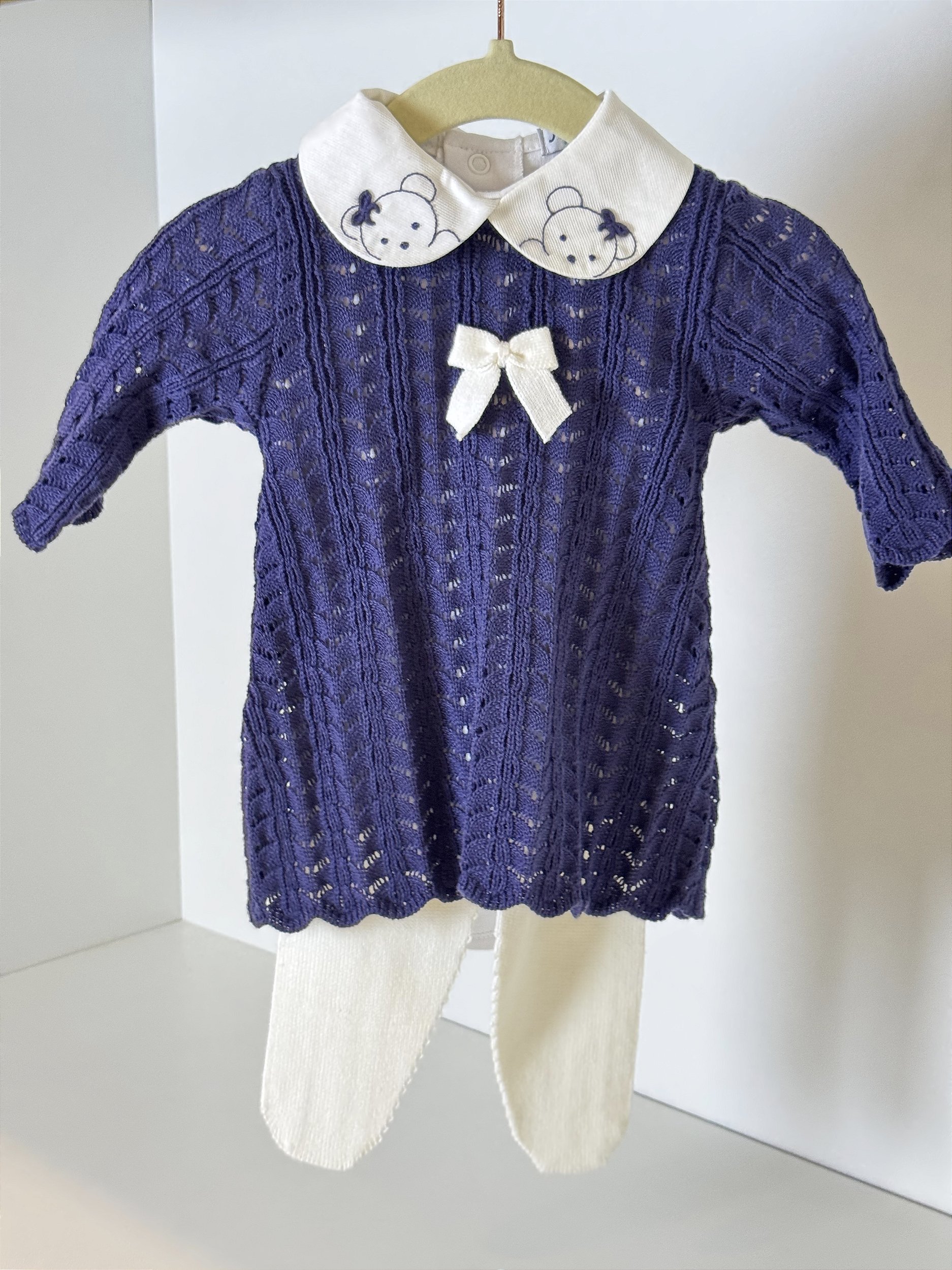 Body 100% algodão com a gola bordada + Vestido em tricot + Calça.